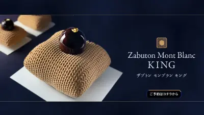 まるでニットのような見た目のZabutonモンブランKINGは、ふっくらとした独特のフォルムに、毛糸で編んだような網目模様が特徴です。 丹波の「銀寄」という希少な栗と洋栗をベストな配合で調合しています。甘さ控えめのモンブランムースが濃厚で、まるで栗を食べているかのような味わいです。